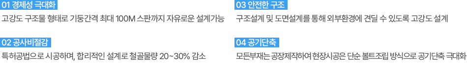 무빙쉘터는 바퀴 또는 레일 시스템을 따라 이동 가능한 구조물 및 작업공간 입니다. 주로 조선소, 대형 철골 제작 공장 등 야외에서 이루어지는 작업을 반실내 환경으로 전환하고자 할 때 사용합니다. 무빙쉘터 설치로 비, 눈, 바람 등의 영향 없이 작업 지속이 가능합니다.