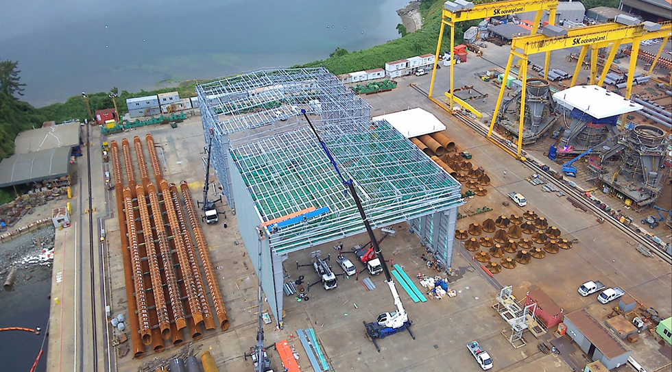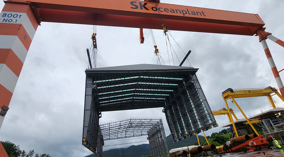 공사명 : SK오션플랜트 구조물 제작/설치 공사일체 / 공법 : SMART-FRAME / 지역 : 경남 고성군